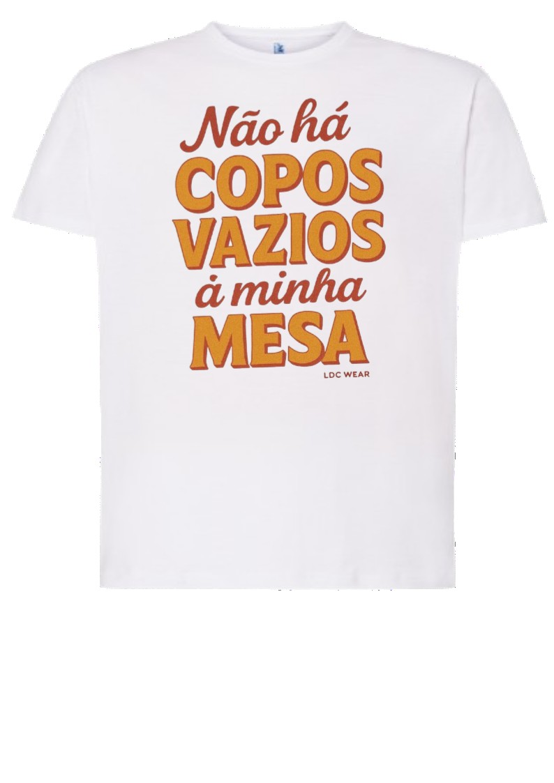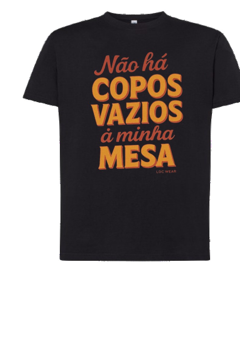 T-shirt verde-oliva com texto estampado em laranja e castanho