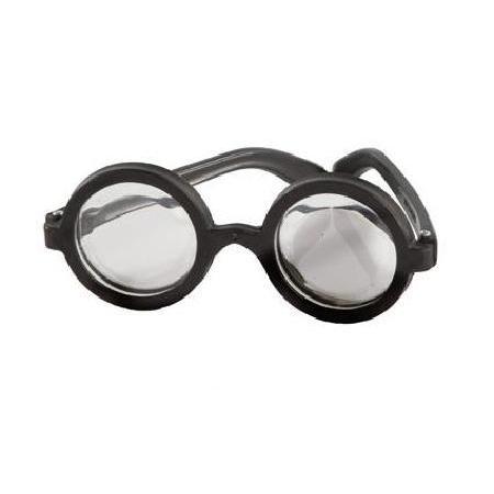 Óculos redondos com armação preta e lentes transparentes