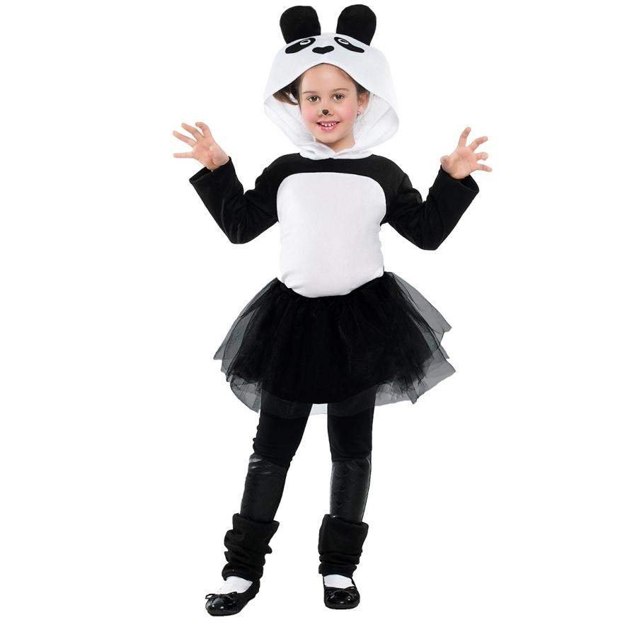 Fato de panda infantil preto e branco com saia de tule e capuz