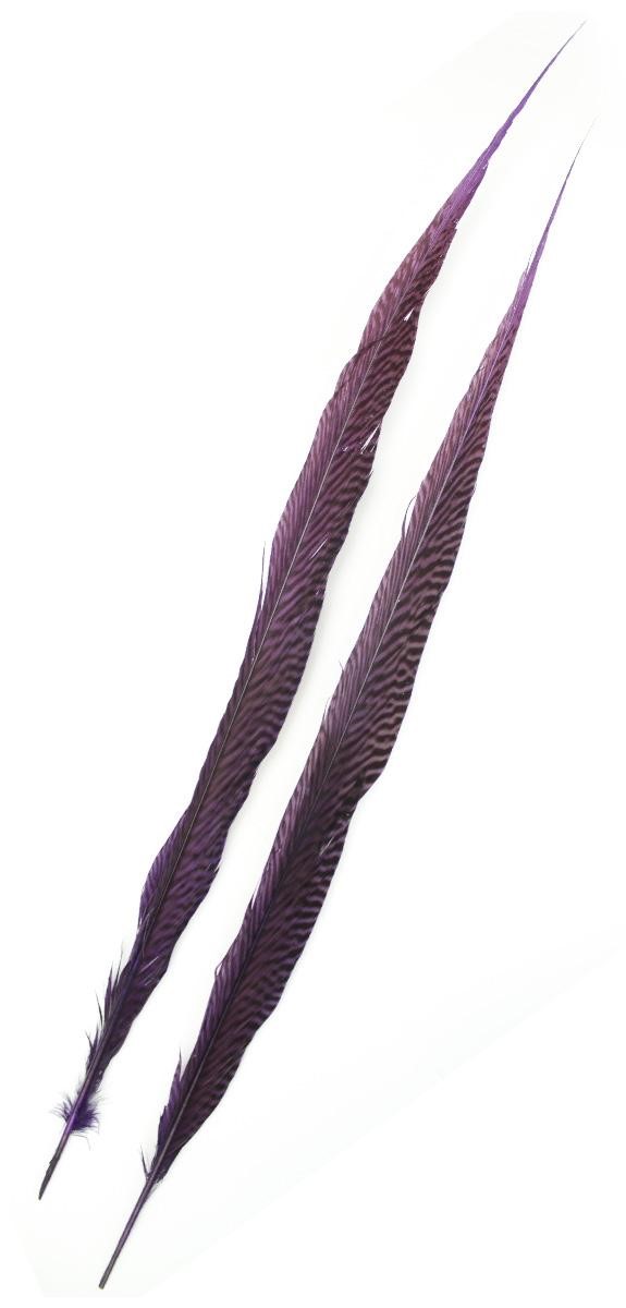 Duas penas longas roxas com padrão de riscas