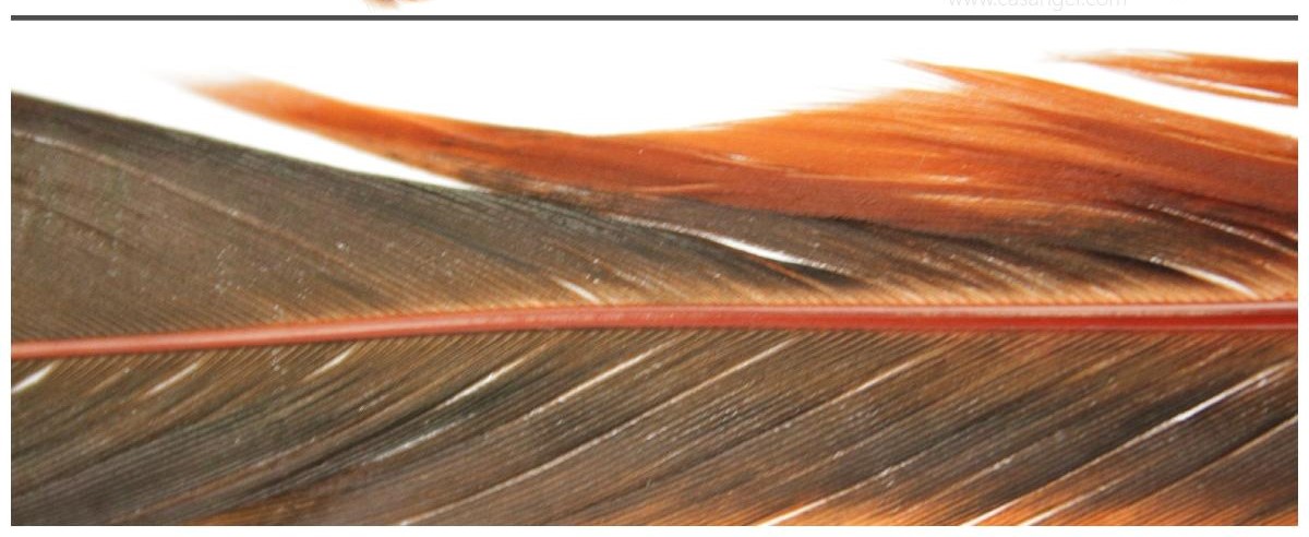 Pena castanho-escura com brilho laranja em fundo branco