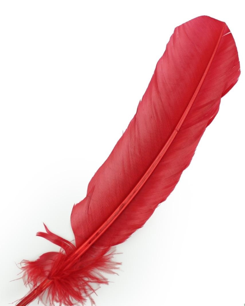 Pena vermelha longa com textura suave sobre fundo branco