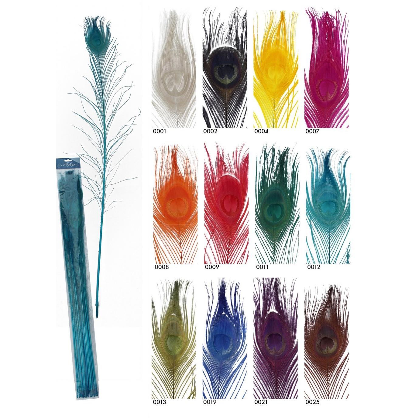 Penas de pavão coloridas organizadas em grelha com códigos numéricos