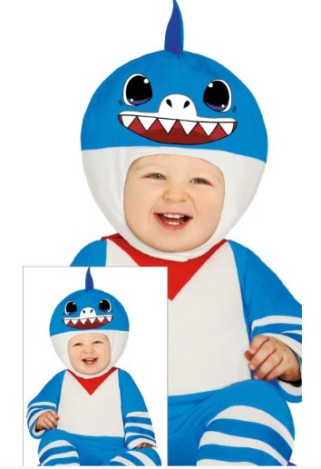 Fato de criança tubarão azul, branco e vermelho