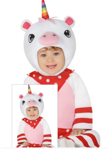 Fantasia de unicórnio para bebé com chifre colorido e padrão branco, rosa e vermelho