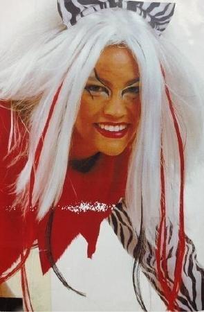 • Peruca Branca com fios vermelhos e pretos