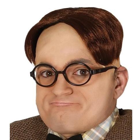 Máscara realista masculina com óculos e cabelo castanho