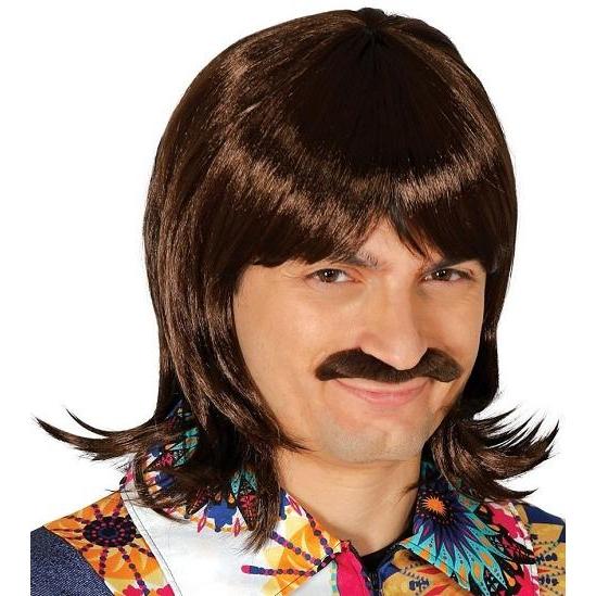 Peruca com cabelo castanho e bigode