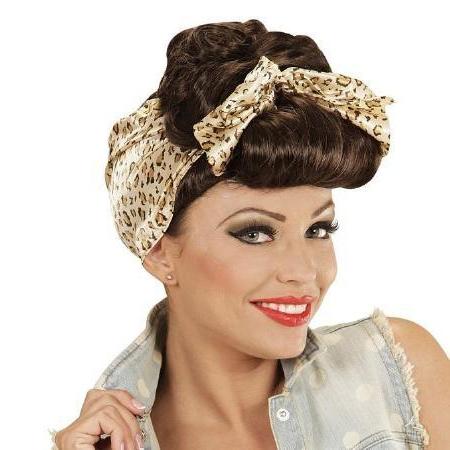 Bandana estampada de leopardo em mulher com maquilhagem e vestido de ganga