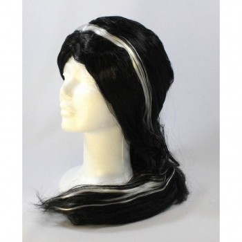 Peruca preta com risca branca em manequim branco