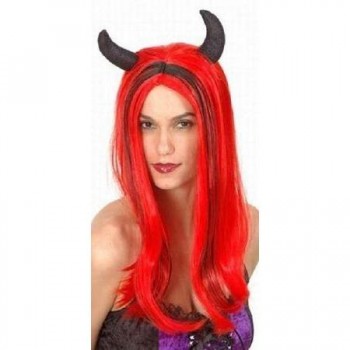 Peruca Vermelha diabo com cornos