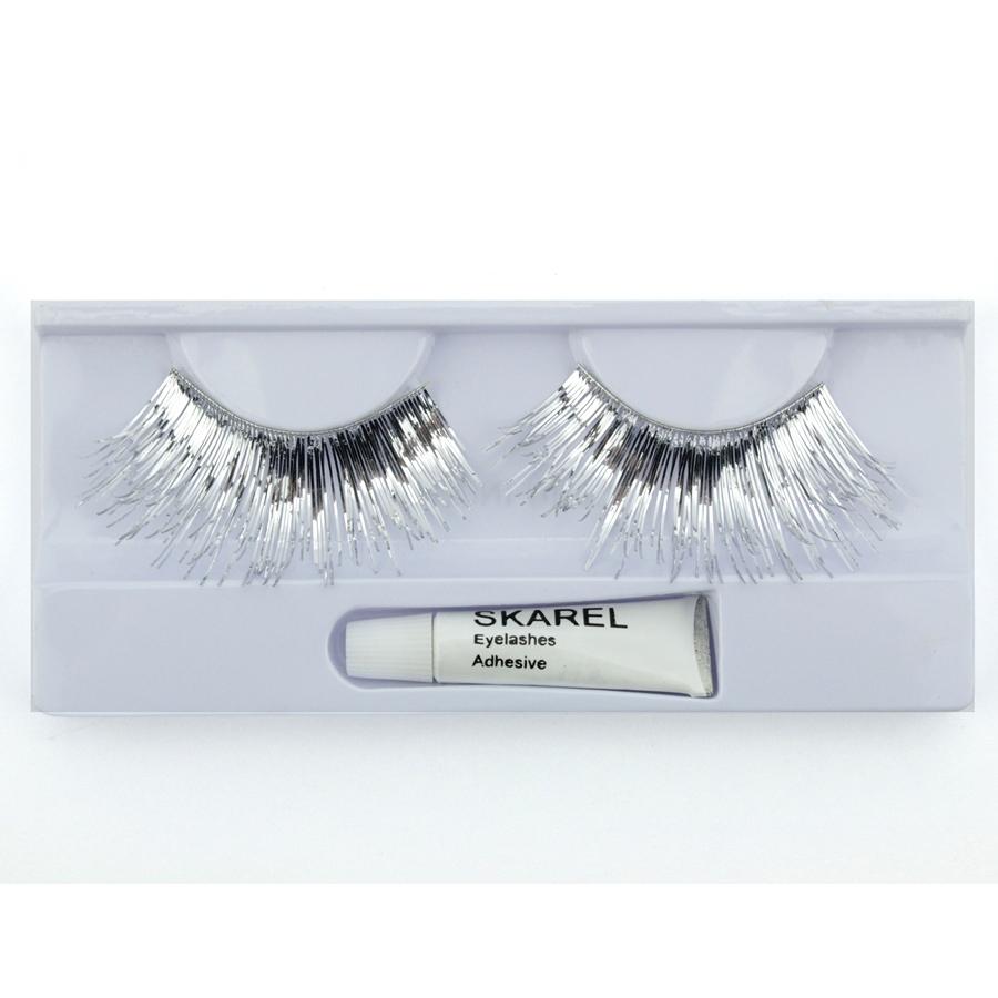 Pestanas postiças prateadas metálicas com adesivo SKAREL