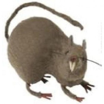 Rato cinzento com cauda longa e patas visíveis sobre fundo branco