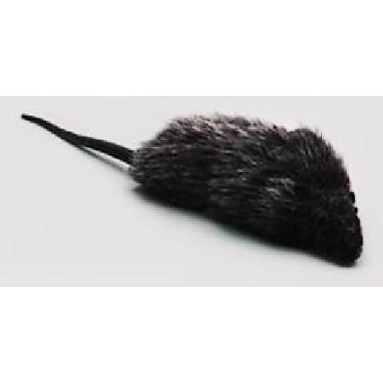 Rato de brinquedo com pêlo castanho escuro e cauda preta