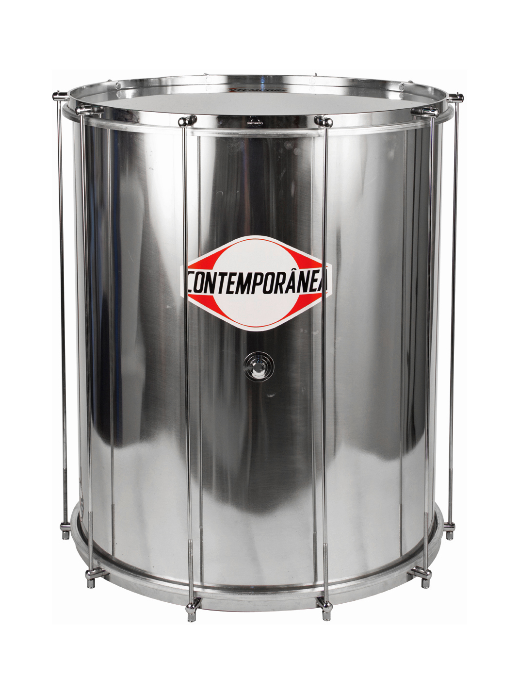 Tambor de percussão metálico grande marca Contemporânea