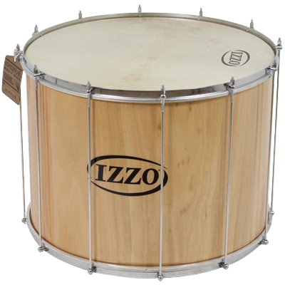 Tambor de madeira clara com pele branca e logótipo IZZO