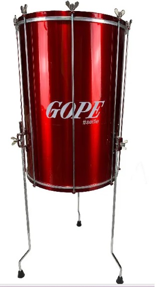 Tambor de percussão vermelho com texto GOPE #selfie