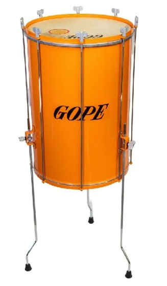 Tambor laranja GOPE com estrutura metálica e tripé ajustável
