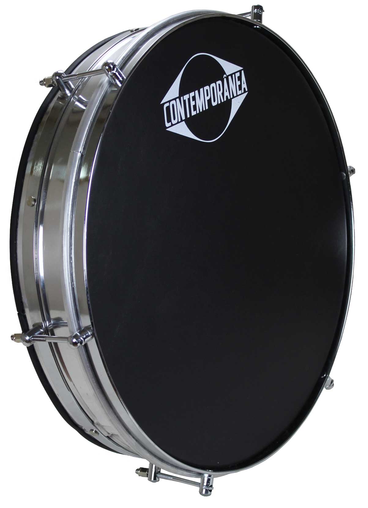 Tambor preto com estrutura metálica e texto CONTEMPORÂNEA
