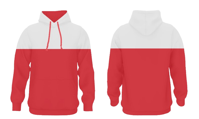 Sweatshirt bicolor branco e vermelho com capuz e bolso canguru