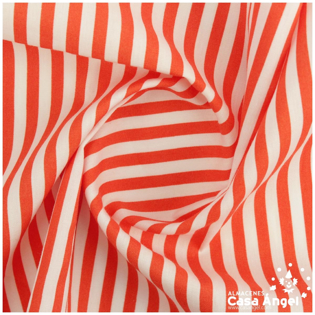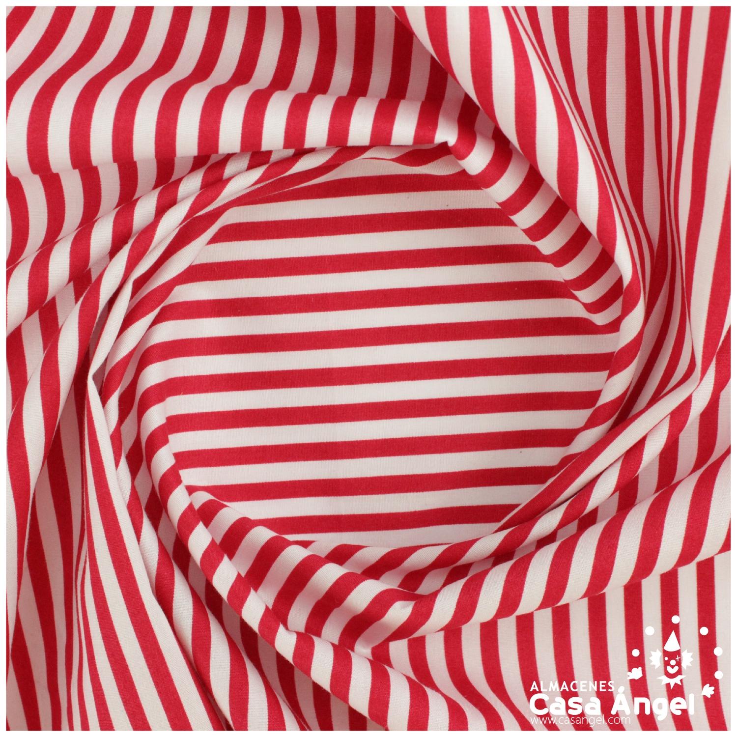 Tecido riscado vermelho e branco em redemoinho com logótipo Casa Angel