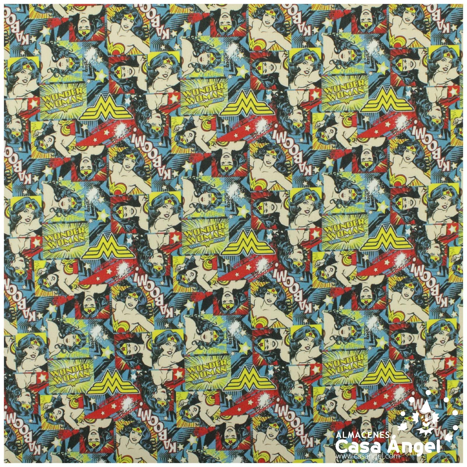 Papel de embrulho com padrão da Mulher Maravilha em estilo banda desenhada colorida