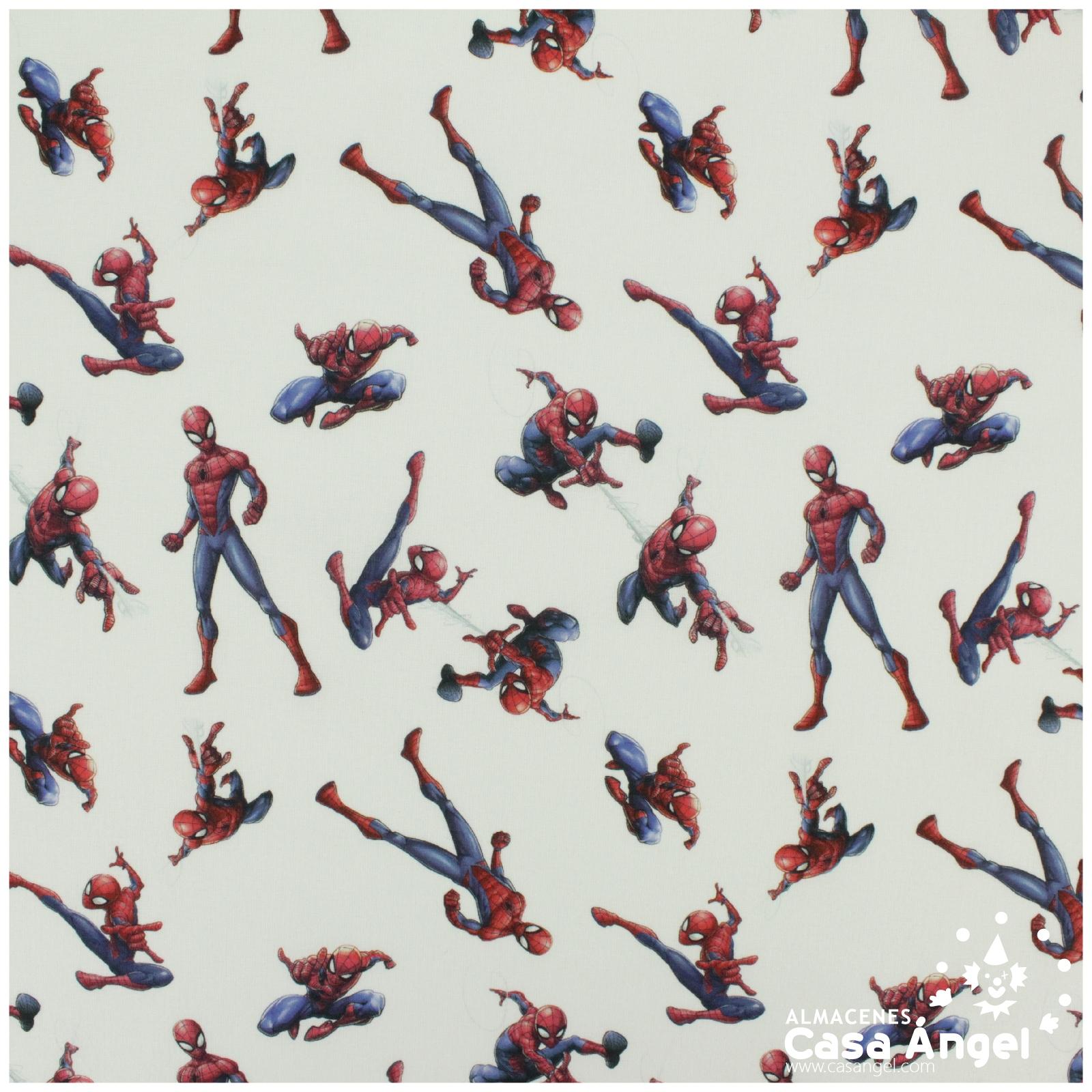 Tecido branco com padrão do Homem-Aranha em várias posições coloridas