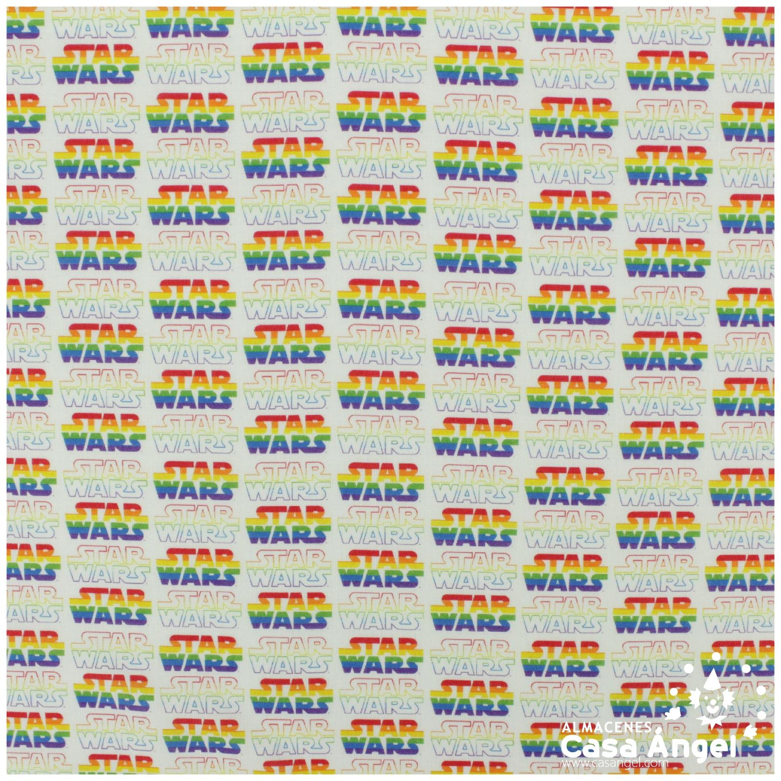 Papel de embrulho branco com padrão do logótipo colorido STAR WARS