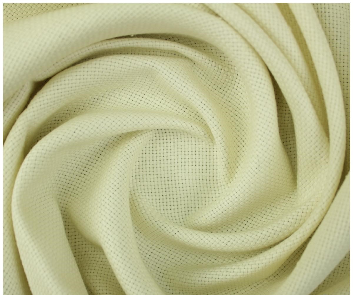 Tecido amarelo claro com malha fina e padrão quadriculado