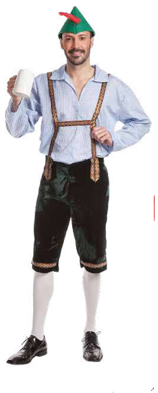 Homem com traje tradicional bávaro segurando caneca de cerveja branca