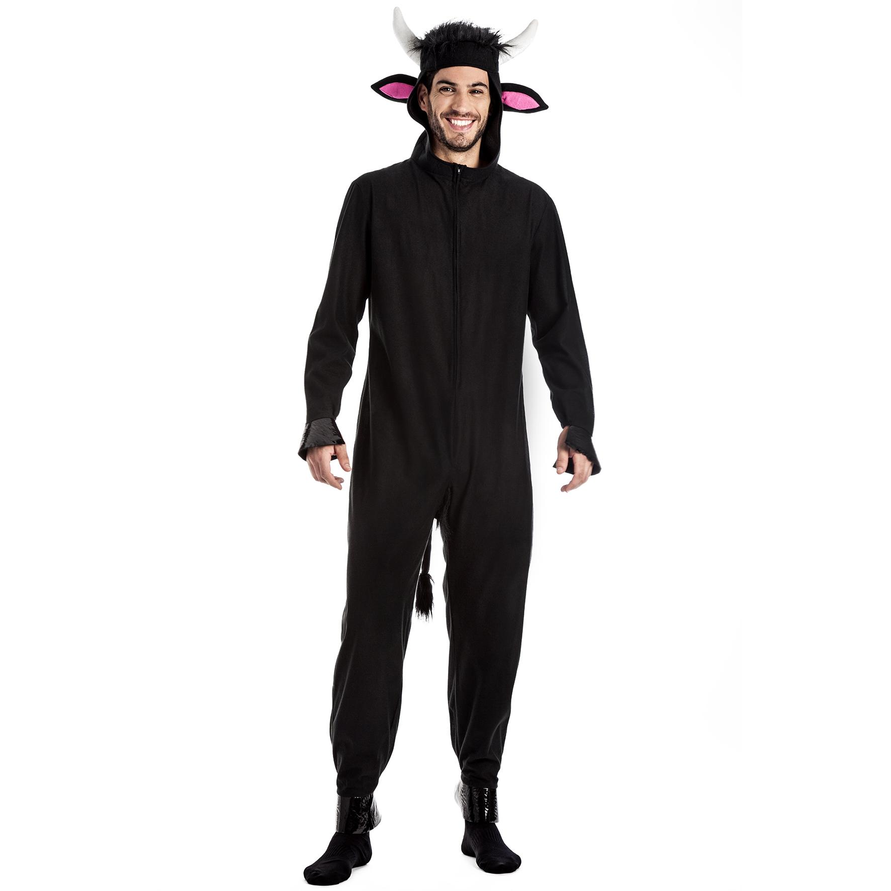 Macacão preto com capuz de animal com chifres e orelhas cor de rosa