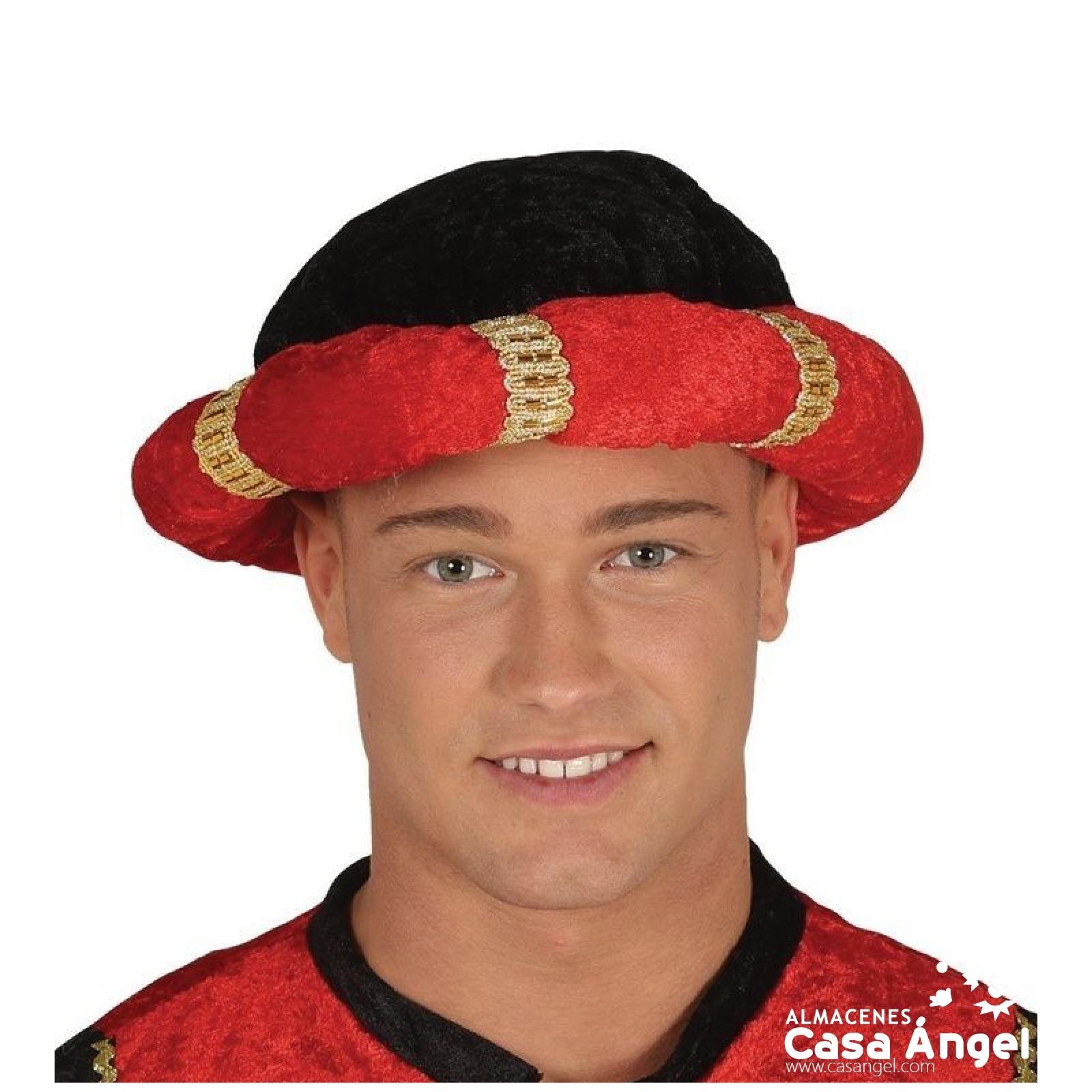 Homem com chapéu negro e coroa verde com fitas douradas, camisa verde e preta