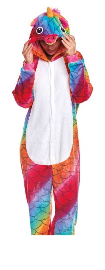 Pijama macacão unicórnio colorido com capuz e padrão de escamas