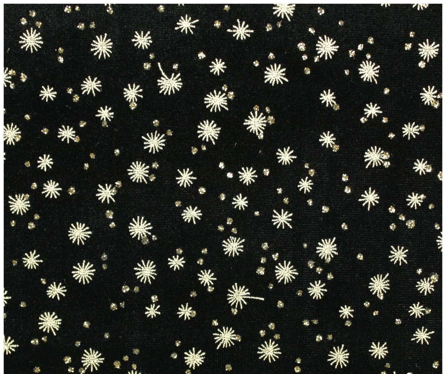 • Veludo preto estampado com pequenas flores e brilhos de gelo