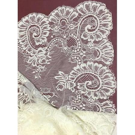 tecido rendado branco com padrão floral sobre superfície vinho
