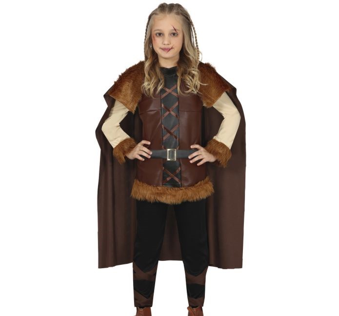 Fantasia de criança castanha com detalhes em pele sintética e capa